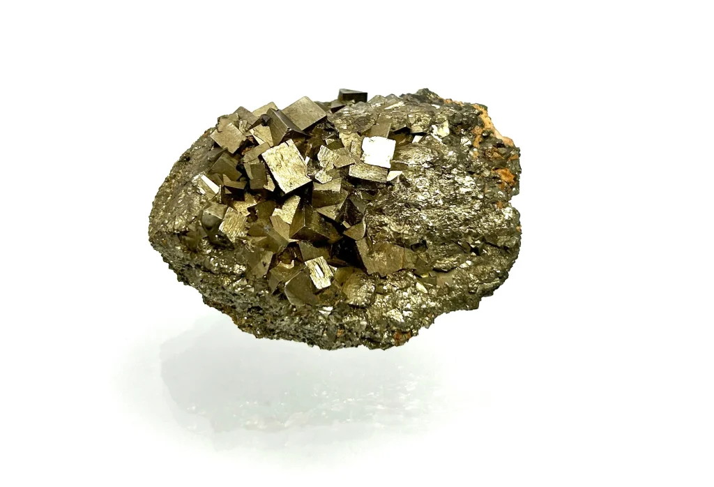 Pyrit wird als Stein der Kraft, Klarheit und Erdung angesehen und soll mentale Stärke und Selbstbewusstsein unterstützen.